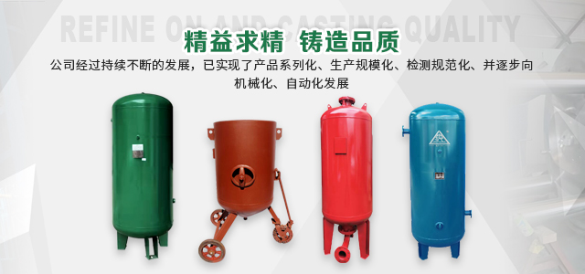 本企業(yè)產(chǎn)品有眾多產(chǎn)品分類,儲(chǔ)氣罐、磨料桶、碳鋼儲(chǔ)氣罐、不銹鋼儲(chǔ)氣罐、中高壓儲(chǔ)氣罐、臥式儲(chǔ)氣罐、緩沖罐、隔膜罐、噴砂罐、分氣缸、以及其他的定做非標(biāo)產(chǎn)品等,產(chǎn)品廣泛應(yīng)用于化工、制藥、橡膠、石油、食品、機(jī)械等行業(yè)。